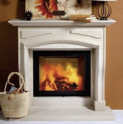 Manttelitakka hissiluukullisella takkasydämellä. Takka on suoran seinän malli. Takkaan valittavissa eri kivilajeja. Takassa Schmid Lina 7363 h takkasydän.