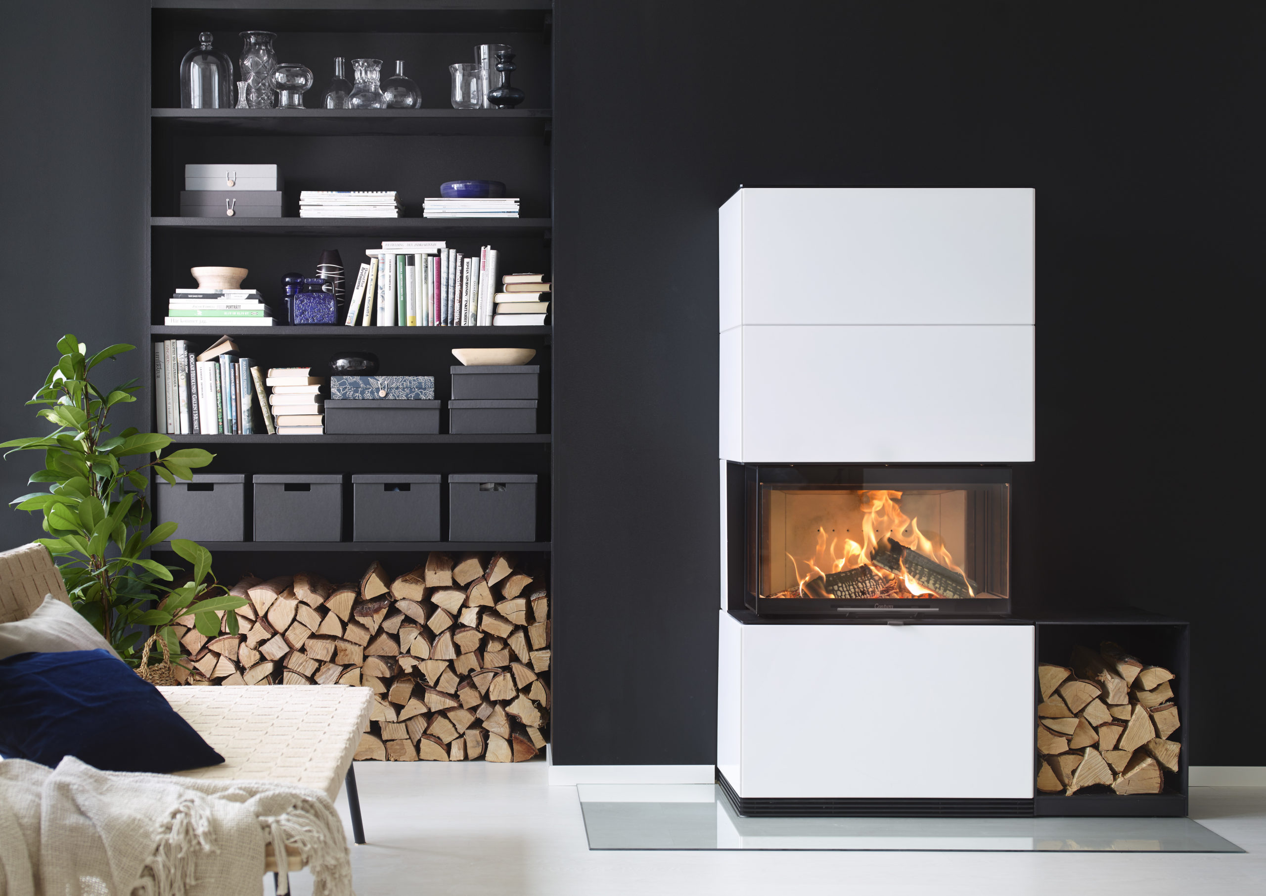 Voit tilata myös kuvissa näkyviä käytännöllisiä halkotiloja takan kylkeen. Kysy lisää lähimmältä kauppiaaltasi!