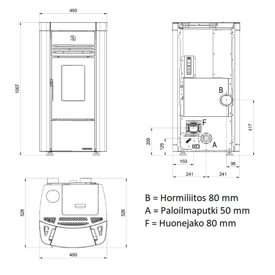 Helppokäyttöinen näyttöpaneeli ilmoittaa nykyisen takan mittaaman huonelämpötilan, ja lämpötilaa voidaan säätää helposti + ja – näppäimillä. Tehoalueella 1-5 voit säätää takan tuottamaa lämpötehoa helposti + ja – näppäimillä. Yksinkertainen ja helppo valikkorakenne. Rullaavat tekstit valikoissa. Takassa vakiona huonetermostaattianturi lyhyellä johdolla (pituus jatkettavissa)