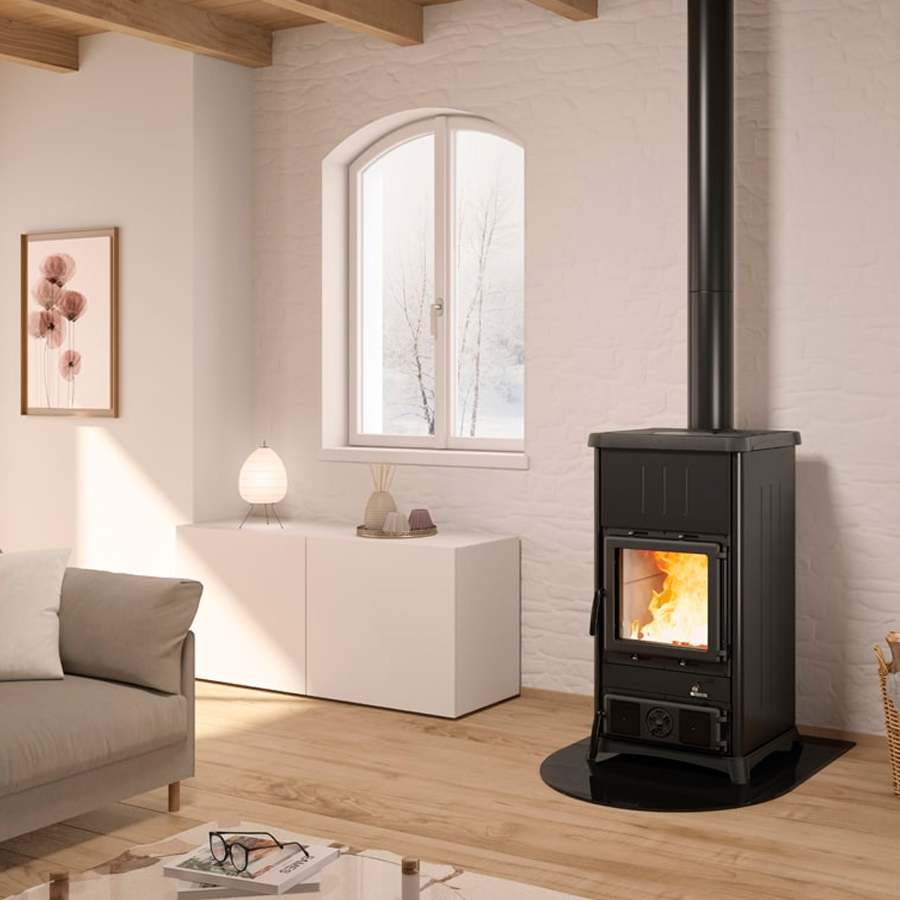 2. Energiatehokkuus: Takan energiamerkintä on A, mikä tarkoittaa, että se käyttää polttopuuta erittäin tehokkaasti. Tämä vähentää polttopuun kulutusta ja auttaa säästämään kustannuksia.