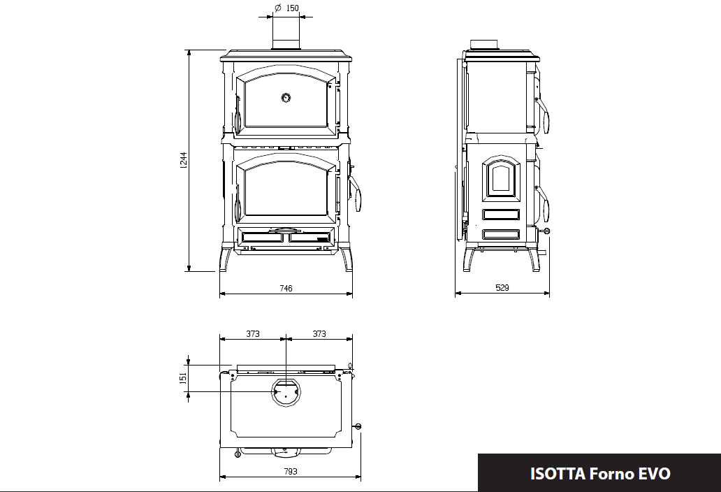 Isotta Forno on huippulaadukas iso kamiina, jonka päällä on valurautainen paistouuni. Erikoisuutena myös sivutäyttöluukku, josta voidaan myös lisätä polttopuita. 9,75 kW huipputeho tuottaa nopeasti ja erittäin tehokkaasti lämpöä. Huippuunsa hiottu jälkipoltto huolehtii että puusta ei ”jää jälkeäkään” huikealla 87,7 % hyötysuhteellaan. Puu palaa myös kauan hyvien ilmansäätöjensa ansiosta. Vain ylälähtö hormiin
