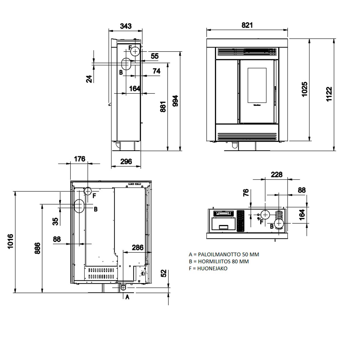 - Irrotettava tulipesän tausta tai kylkielementit (nouhoukseen)