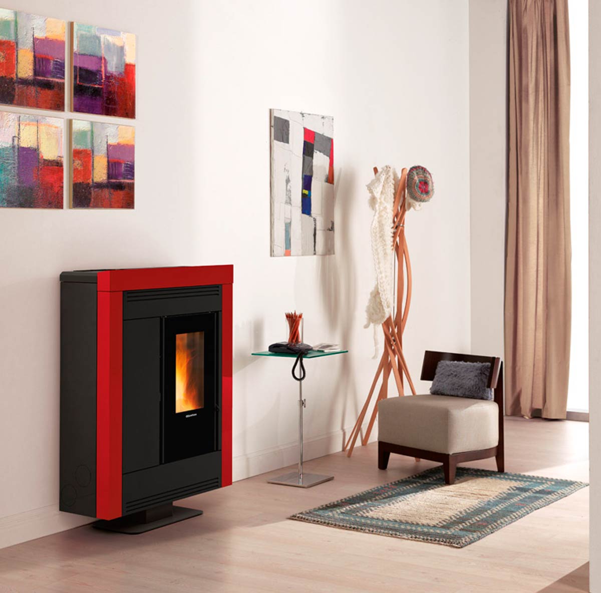 Tuotteen vakio-ominaisuksiin kuuluu Glass Cleaning system, jossa ilmavirtaukset on suunniteltu pitämään takan tulipesän lasin mahdollisimman kauan puhtaana. Nopeussäätyvä savukaasumoottori mittaa jatkuvasti nopeutta. Pellettisäiliössä mekaaninen turvatermostaatti, joka pakkokatkaisee pelletinsyötön mikäli säiliön lämpötila nousee liian korkealle. Alipaineanturi tarkkailee hormin vetoa mittaamalla takan läpi virtaavaa ilmaa. Viikko-ohjelmoinnilla mahdollisuus asettaa takka syttymään ja sammumaan haluttuina aikoina. Automaattinen sytytys sytytysvastuksen avulla, paina takka käyntiin napista tai aseta haluttu huonelämpötila, jota takka noudattaa syttymällä ja sammumalla tarpeen mukaan.