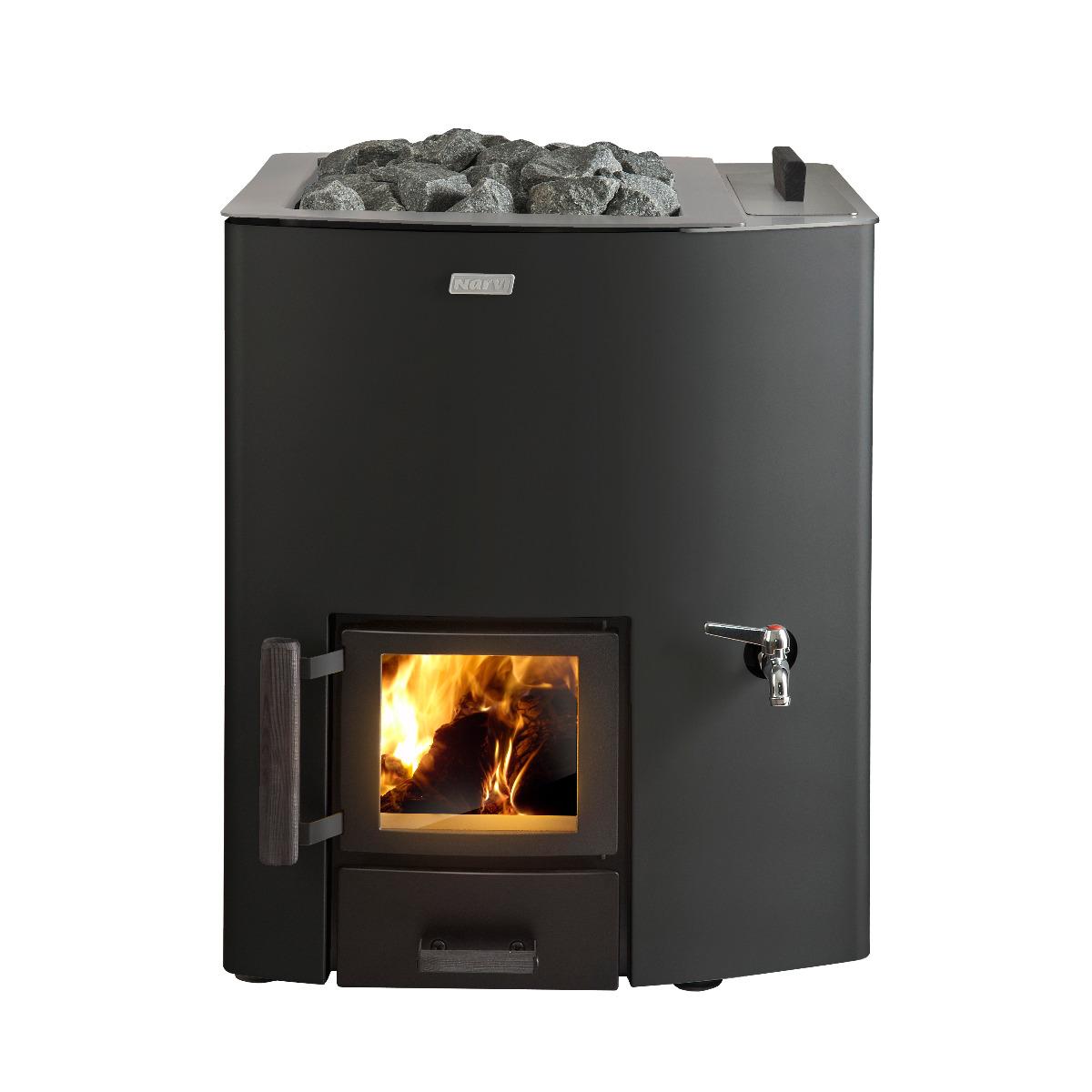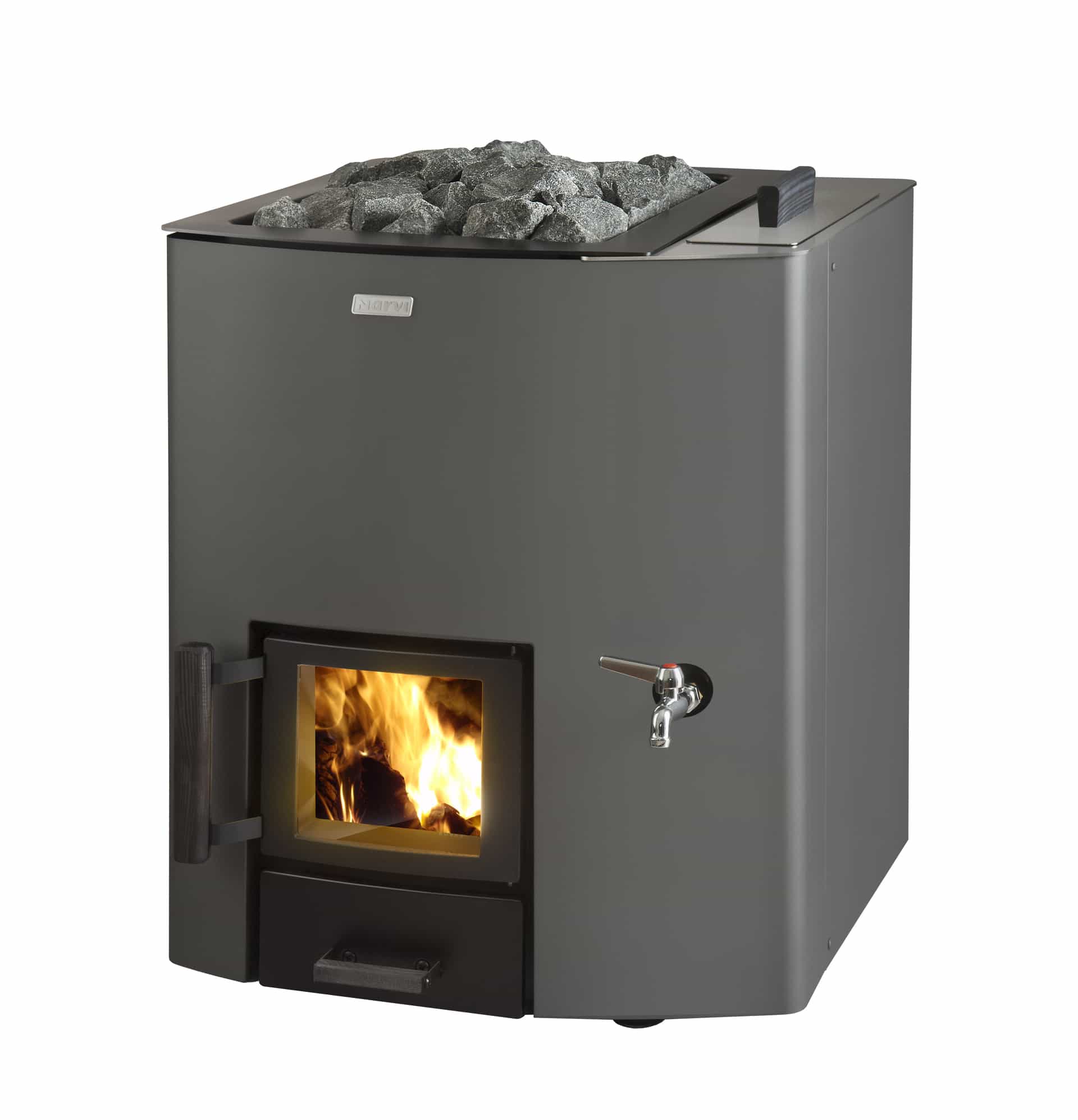 Puiset käyttökahvat ja pelkistetty kiukaan ajaton muotoilu sopii jokaisen saunaan. Suuri kivimäärä takaa ihanan pehmeät löylyt koko saunaporukalle. Narvi NC-mallisto on rakenteeltaan jykevä, mutta siitä huolimatta kiuas lämpenee jo pienellä puumäärällä. Kiukaan palotekniikkaa on parannettu tulipesän rakenteen uniikilla muotoilulla, jolloin palaminen on puhtaampaa ja tehokkaampaa. NC-kiukaissa on pienet suojaetäisyydet puulämmitteiseksi kiukaaksi.