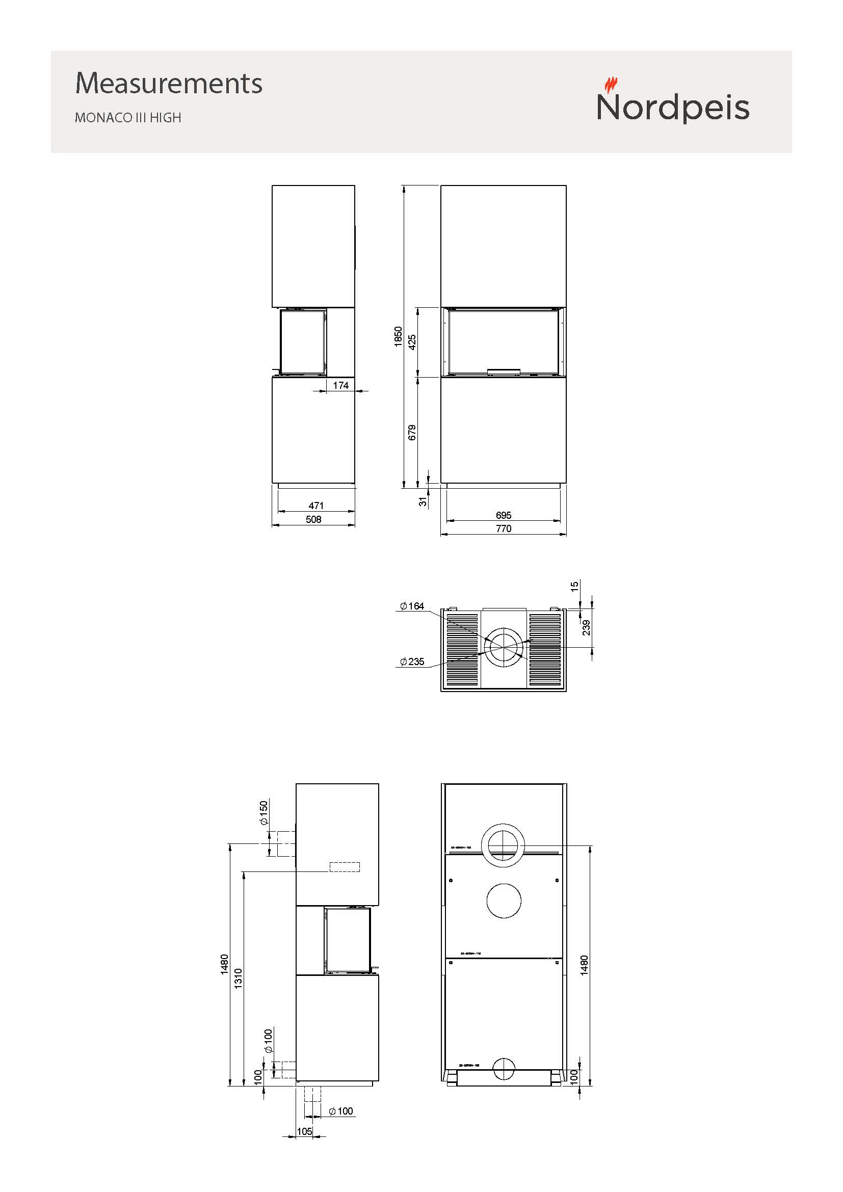 Nordpeis Monaco II korkea on hissiluukullinen kolmilasinen kiertoilmatakka. Ilma-aukot on piilotettu jalustaan. Voit sijoittaa takan 0 mm:n suojaetäisyydellä taustaseinää vasten. Takan hissiluukku on miellyttävä käyttää. Sivulasit voit avata puhdistusta varten.