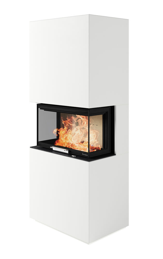 Takan palamisilmansäädöllä takan tehoa ja palamisen nopeutta voidaan säätää hienosti. Parhaimmillaan tämä takka on suoran seinän asennuksessa, jossa edessä ja molemmilla sivuilla avautuu hieno näkymä takkatulelle.