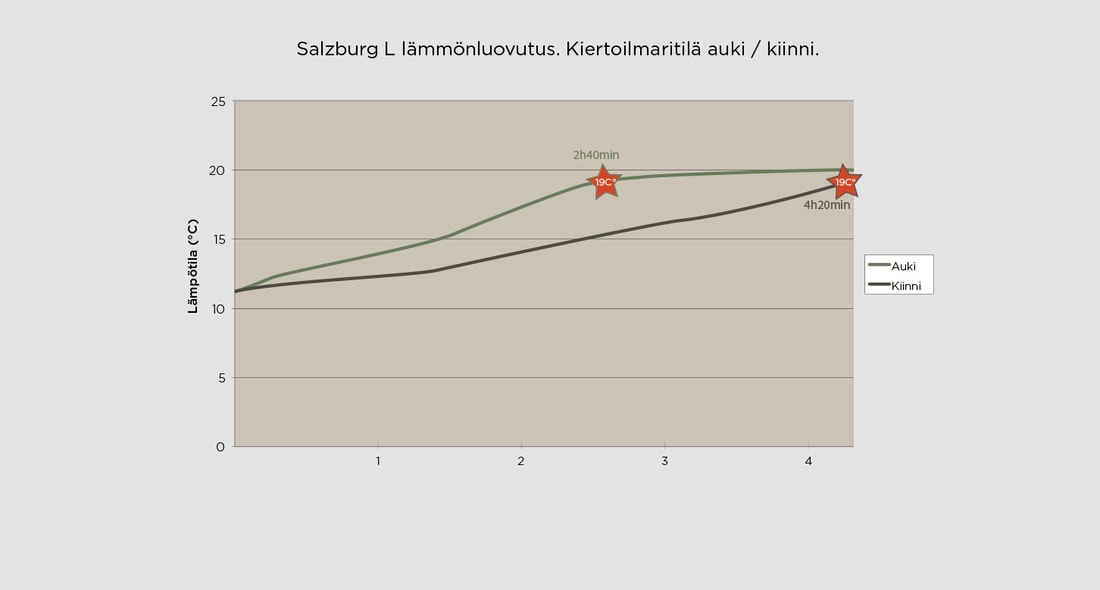 Usein varaavissa takoissa joutuu odottamaan hetken ennen kuin se alkaa luovuttamaan tehokkaasti lämpöä. Convection -kiertoilmatoiminnon avulla sinun ei tarvitse enää odottaa! Helppokäyttöisen kiertoilmaritilän saa hetkessä auki luovuttamaan lämpöä välittömästi tai suljettua mikäli välittömälle lämmönluovutukselle ei ole tarvetta. Saat siis varaavan- ja kiertoilmatakan hyödyt kätevästi samassa paketissa!
