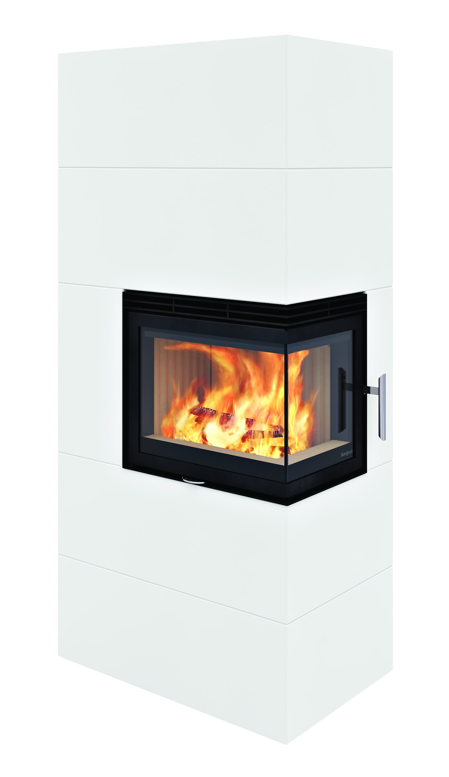 Nordpeis Salzburg C Convection on Nordpeisin kulmaluukkuinen varaava takka kiertoilmatoiminnolla.