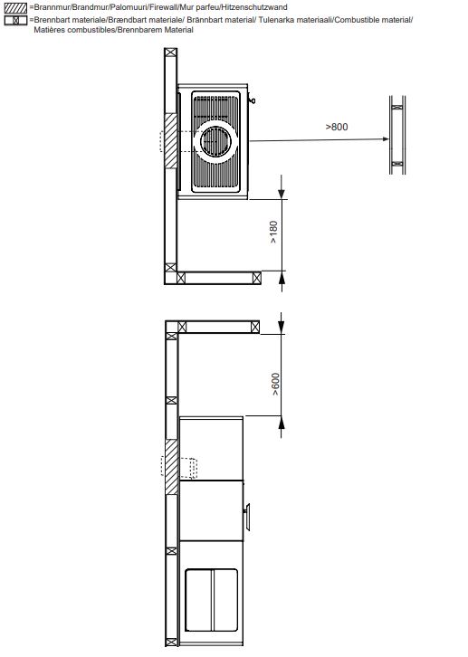 Takan toimitukseen sisältyy suojaseinäsarja jonka avulla takka voidaan asentaa 0mm suojaetäisyydellä (taakse) tulenarkaan materiaaliin.