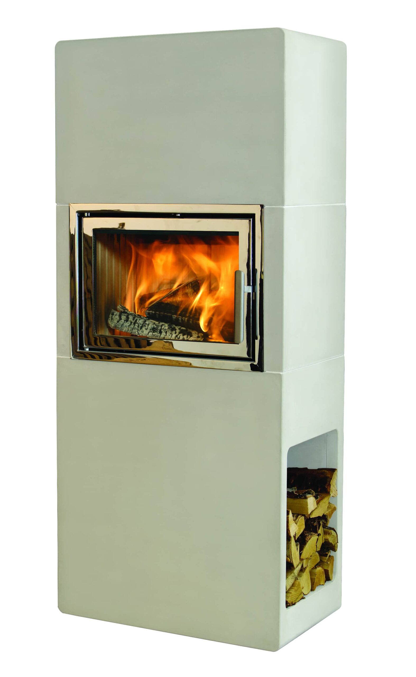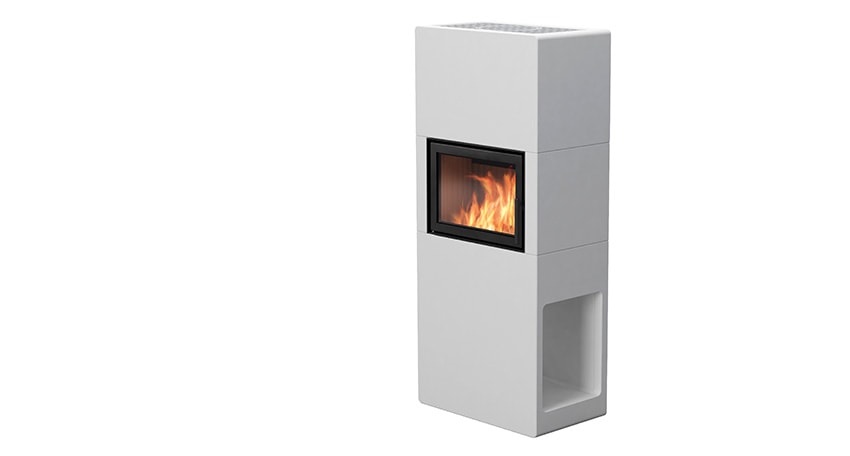 Stockholm korkea sisältää vakiona kätevän halkotilan, joka on sijoitettu takan alaosaan sivulle viemättä yhtään ylimääräistä tilaa.