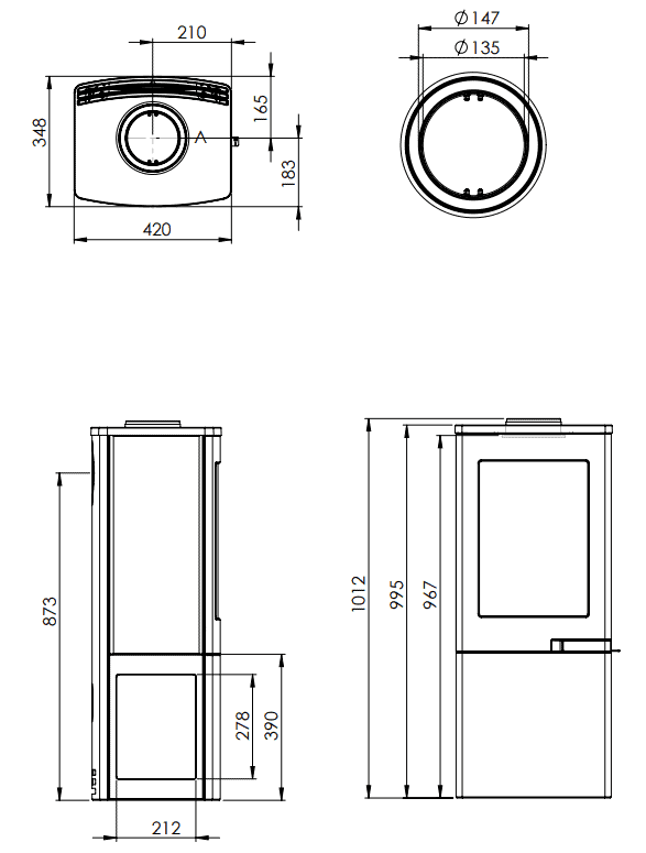 Pienestä koostaan huolimatta kamiinassa on 4kW nimellisteho, joka ei jätä ketään palelemaan!