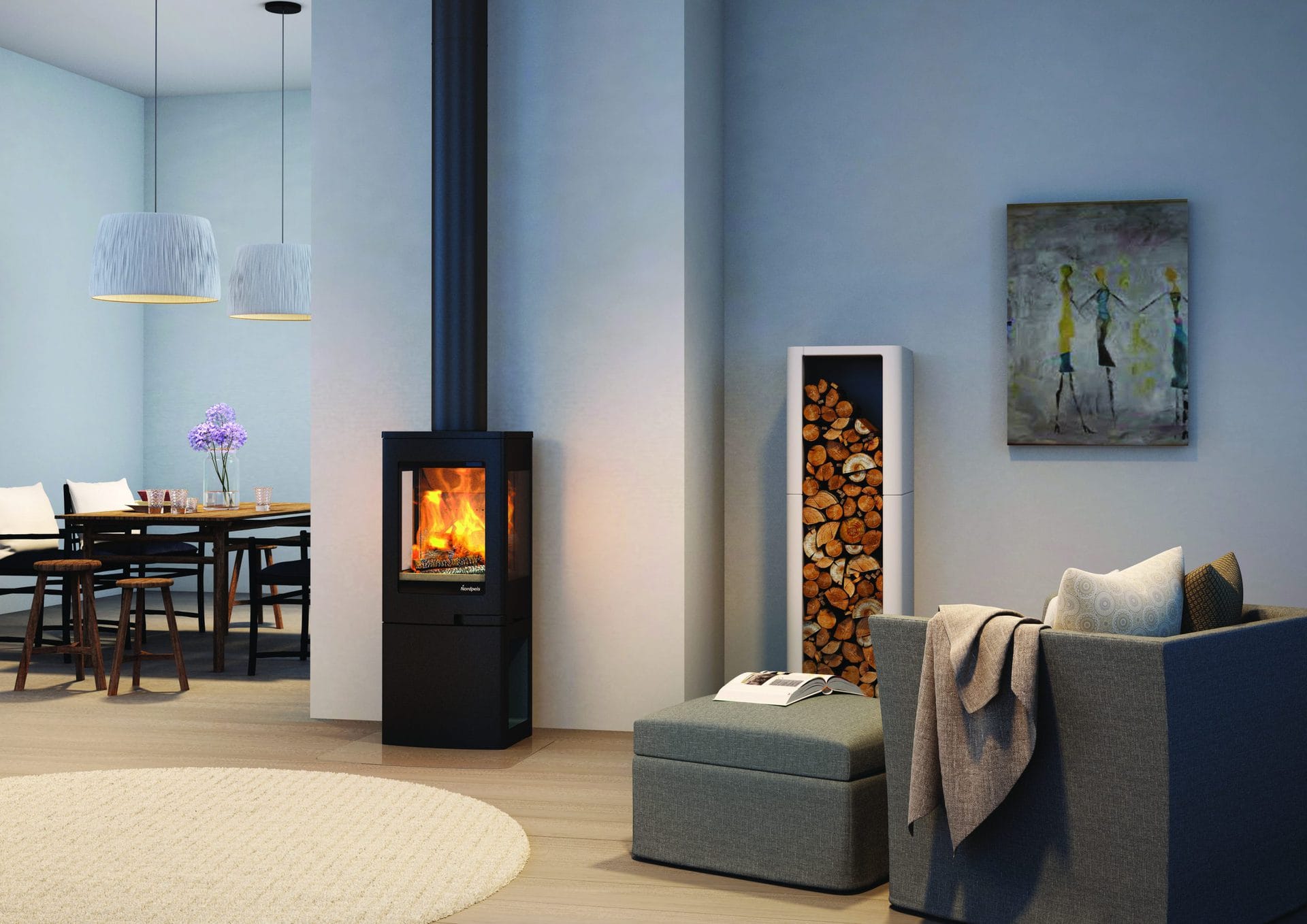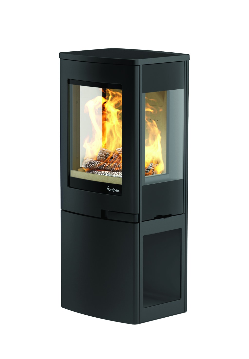 Nordpeis Uno 2 on puutilarunkoisella jalalla varustettu kamiina Uno-sarjassa. Voit säilyttää polttopuitasi tyylikkäästi takan jalassa!