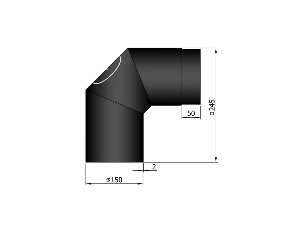 Ø150mm liitosputki – 90° (2×45°) matala nuohousluukulla