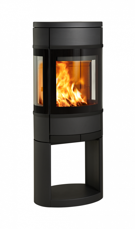 Suuret sivulasit tarjoavat ainutlaatuisen näkymän tuleen. Valittavana on kahvat ja koristeosat mustina tai alumiinisina. Tämä malli on saatavilla pylväsjalan, avoimen tai suljetun puutilan kanssa.