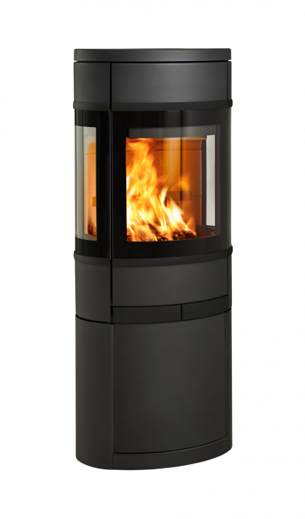 Suuret sivulasit tarjoavat ainutlaatuisen näkymän tuleen. Valittavana on kahvat ja koristeosat mustina tai alumiinisina. Tämä malli on saatavilla pylväsjalan, avoimen tai suljetun puutilan kanssa.