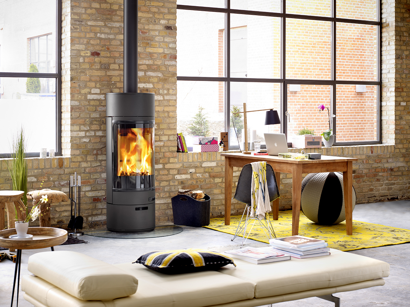 Scan 85 on suuri sylinterinmuotoinen puukamiina, joka sopii erinomaisesti suurempiin tiloihin.